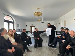 Timp de două zile, cei 15 preoți implicați au participat la un curs susținut de lector univ. dr. Oana Moșoiu, în cadrul căruia au învățat principii de educație nonformală și au lucrat la schema și conținutul viitorului ghid. Preoții au contribuit la stabilirea temelor ce vor fi abordate și a șablonului pe care se vor construi lecțiile destinate copiilor între 7 și 12 ani.